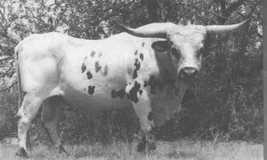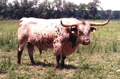 FM Graves 102 is considered by many breeders to be one of the greatest producing females in the Butler bloodline. She produced numerous sons (Ace's Black Magic Man & Ace's Medicine Man) and daughters that have had a major impact on the breed and the Butler bloodline. At on time she held the record for the highest selling Longhorn at over $60,000. Her last natural daughter, Little Ace Tupelo Honey was a high seller at the Butler Sale
