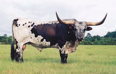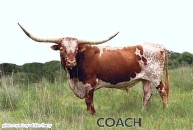 He is a son of the great bull Coach and the legendary MF TNT cow. He was an impress bull with both body size and horn length. He is the sire of numerous top quality sons and daughters.