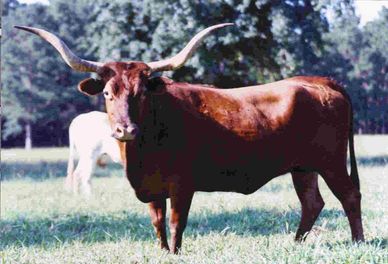 Dixie Hunter is one of the top son’s of Classic and Rose Red. In the mid 80’ Dixie Hunter was sold at private treaty for a reported ($75,000) industry record price. He measure near the 60” mark. He consistently produced offspring with good horn growth as well as good conformation. The mating of Dixie Hunter and the great Butler cow, FM Graves 102 produce some of his most sought after offspring with embryo pregnancies from this pairing selling for $9,000 and up. Today there are numerous big horn cattle that trace back to Dixie Hunter. A lot of these animals are from the breeding programs Johnnie Hoffman, Ace Cattle Co. and Owen McGill. A limited amount of Dixie Hunter semen can still be found and is being used today.