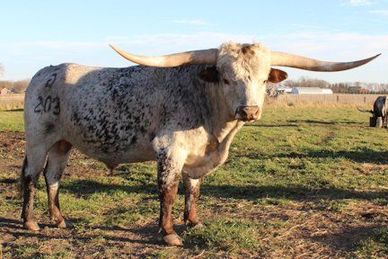 Bevo sired the Longhorn industry’s first 60” horn bull, Classic. Bevo also produced several other note worthy sons but his two most famous ones were Classic and Monarch 103 (measured in the upper 50’s). Bevo’s semen was syndicated for 1 million and the syndicate hosted the Bevo Syndicate Sale. Bevo came out of the breeding program of Milby Butler the founder of the Butler Bloodline of Longhorn cattle. Semen is still available.